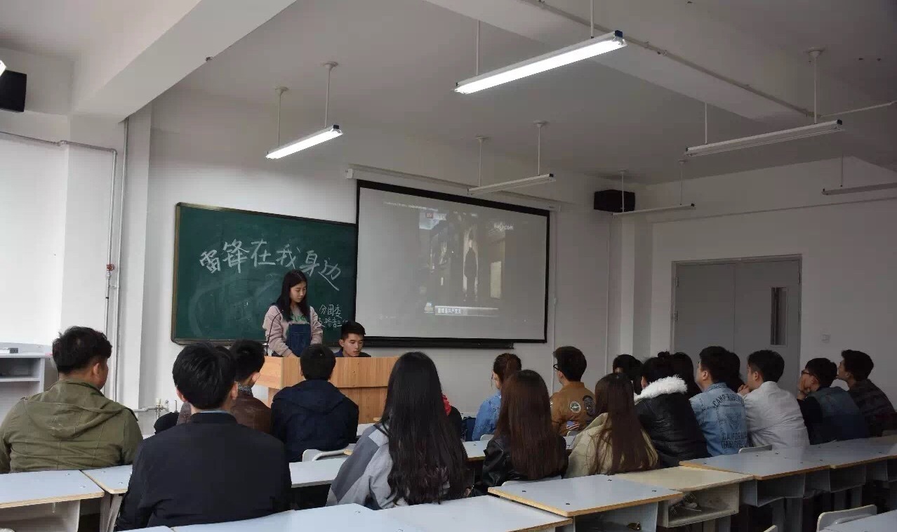 班会上,2015级播音3组团支书盛安其为大家播放了有关于“现代活雷锋”郭明义的视频和图片。并且让3组的郧一硕同学和张禹婷同学分享了他们所知道的关于雷锋所做的好事。15级播音3组的王首人和杨雨陈也分享了自己身边的好人好事。